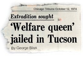 “She has 80 names, 30 addresses, 12 Social Security cards, and is collecting veterans’ benefits on four non-existent deceased husbands. She’s got Medicaid, getting food stamps, and is collecting welfare under each of her names. Her tax-free cash income is over $150,000.”