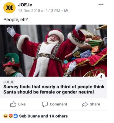 For instance, this Santa post (left) appears to shed light on a growing public movement to change Santa’s gender to female or gender neutral. What is not so apparent however is that the “survey” asked respondents “If you could 'rebrand' Santa for modern society, what gender would he be?”[9] The answer choices provided were “Male, Female, and Gender Neutral.” So, the respondents were asked not if they wanted to “rebrand” Santa’s gender, but rather how they would. The post demonstrates how easily a controversy can be manufactured by removing critical context and how the ensuing reactions can be exploited to drive engagement.